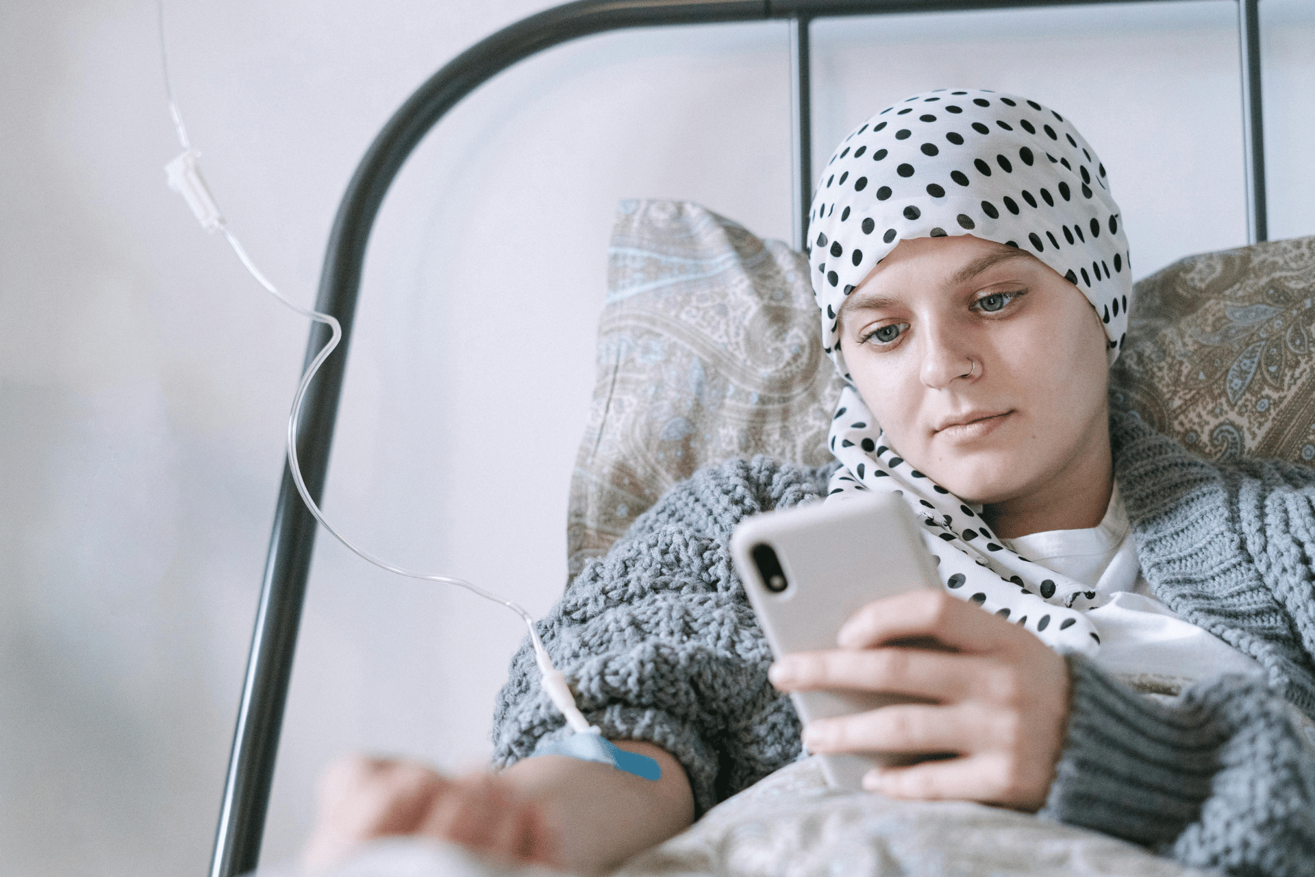 Photo by Ivan S: https://www.pexels.com/photo/a-patient-using-a-phone-while-under-treatment-6436270/